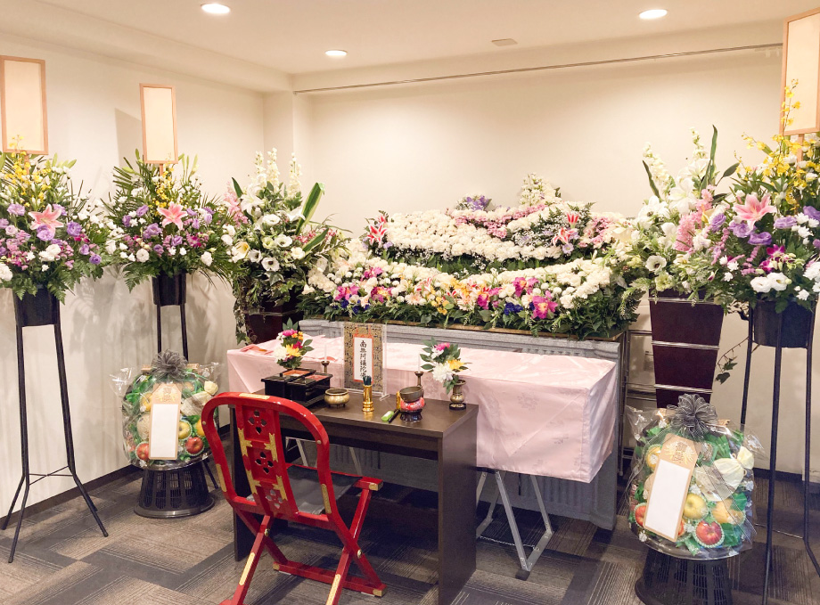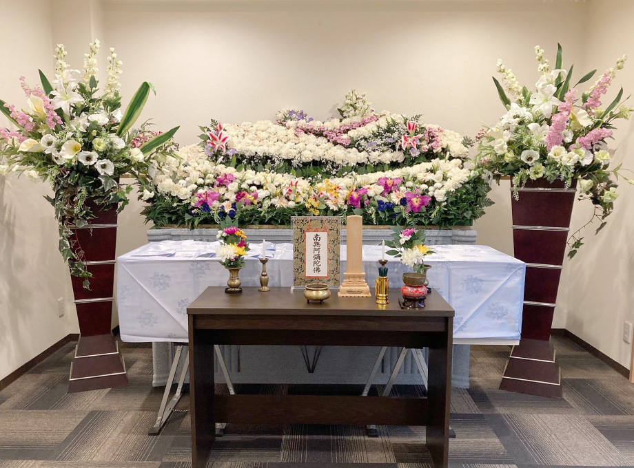 お別れ用祭壇(造花)にて告別式ができる葬儀プランです。